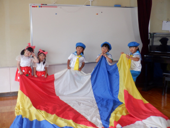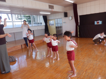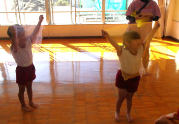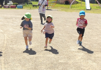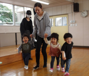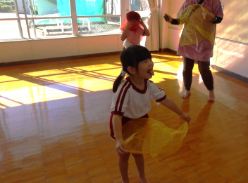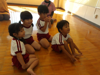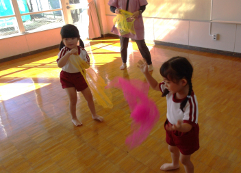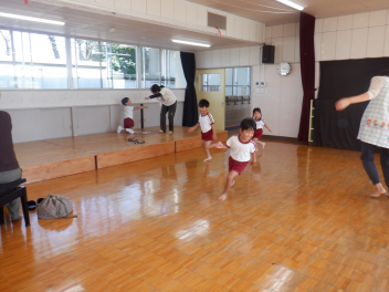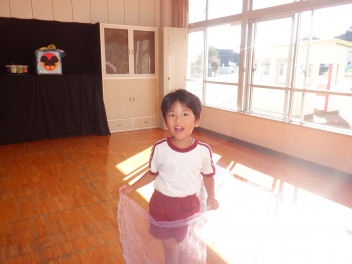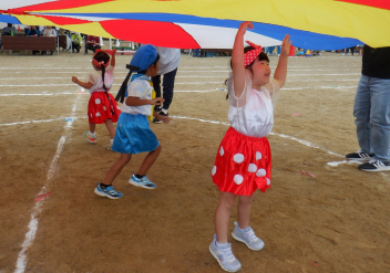 年中さん、年少さんは、たくさんのお客さんの前でドキドキしながらも、その子その子の楽しみ方で‟やってみたいな!”と自ら走ったり、踊ったり、パラバルーンをしたりすることを楽しみました。