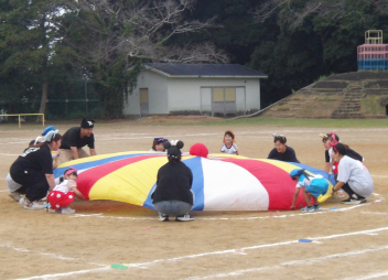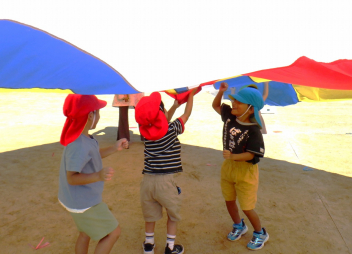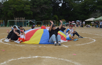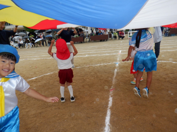 年長さんは、自分の力を発揮しながら思い切り体を動かすこと、友達やお家の方と一緒に気持ちを合わてバルーンを成功させることを楽しみました。