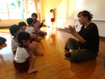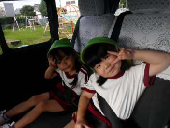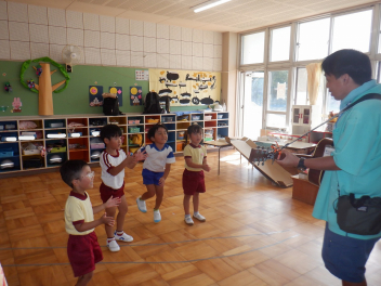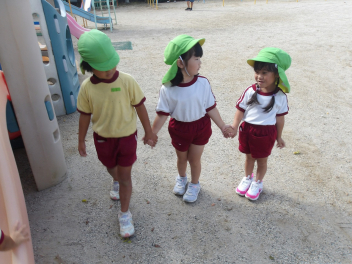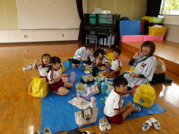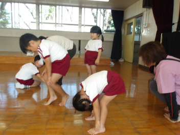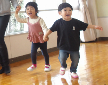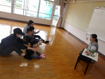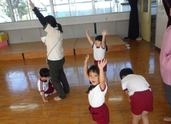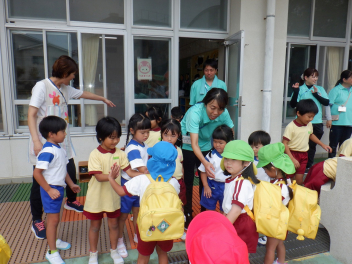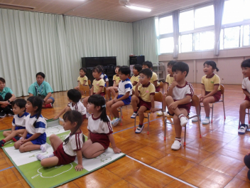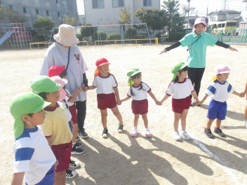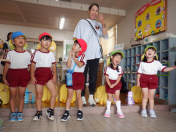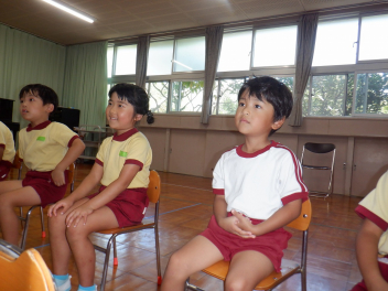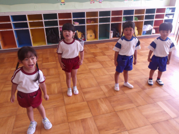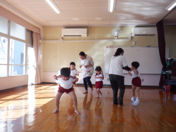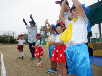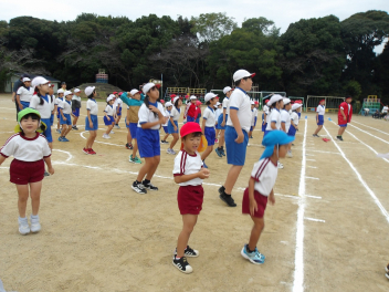 隊形移動をして、「お父さーん、お母さーん、おばあちゃーん」とお家の方を呼びます