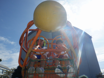 子供たちがバルーンの中に入って、飛び跳ねて楽しみます