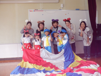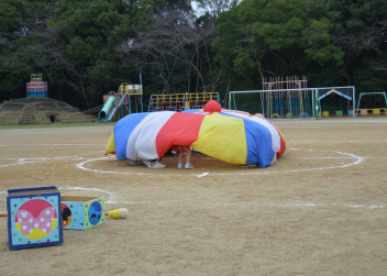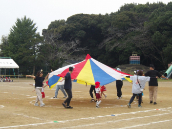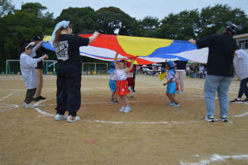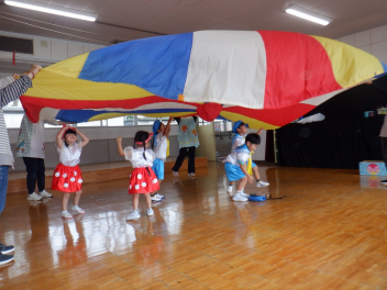 ここからは、親子で曲に合わせたパラバルーンの演技です