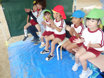 小学生のお兄さんお姉さんが頑張っている姿を、一生懸命に応援する姿も見られました