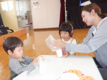 年少ひよこ組さん、年中うさぎ組さんも、素敵なプレゼントをもらいました