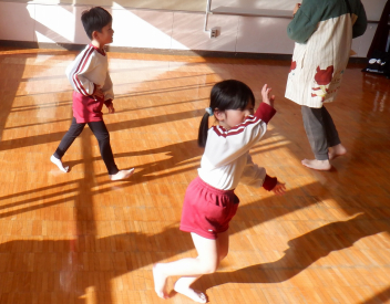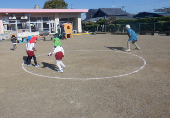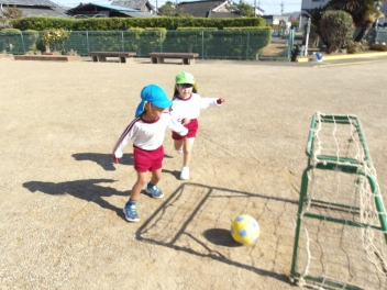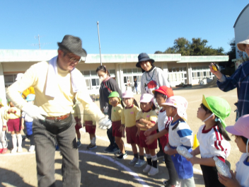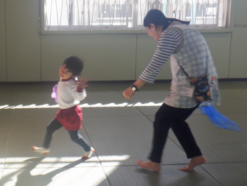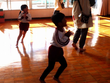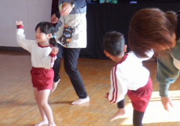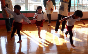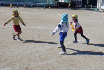 子供たちは「がんばれー!」と先生たちの姿を応援