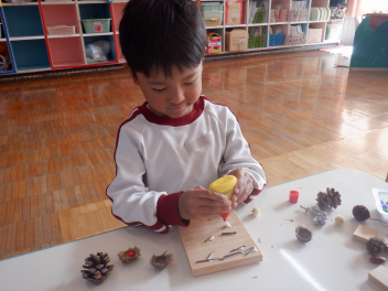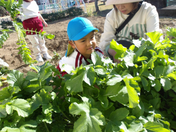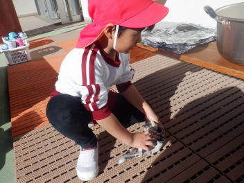 絵具をたっぷり使ってダイナミックに色を重ねたり工夫したりしながら、思い思いのさつまいもを表現していました