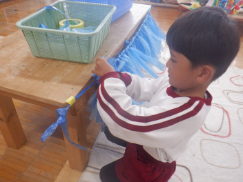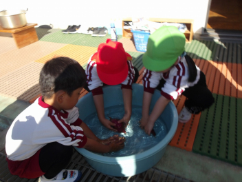 その後、みんなで筆や刷毛を使っての絵の具遊びを楽しみました。