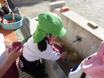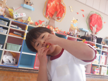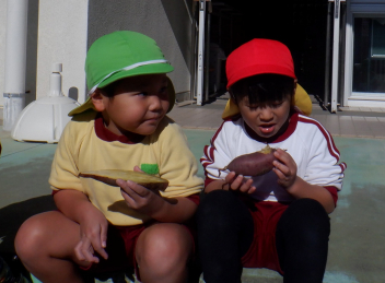そして、先日サツマイモ掘りを楽しんだこともあり、今日は"サツマイモ”の絵を描きました。