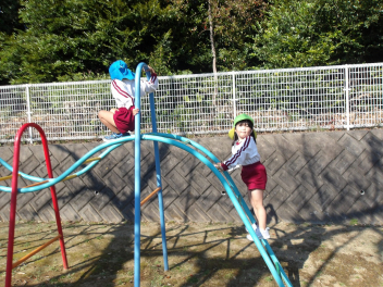 会館の広場には、幼稚園とはまた違った魅力ある遊具があり、子供たちは目を輝かせて遊び始めました!