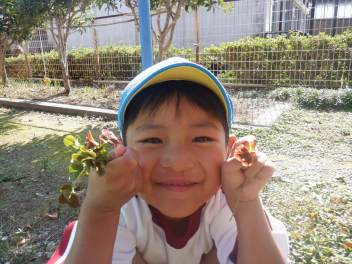 「見て見て~!四つ葉のクローバー見つけたよ!」と嬉しそうに見せてくれたS君wink