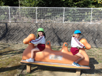 友達と一緒にのってゆらゆら揺らしたり、ブランコを漕いだり、滑り台を何度も滑ったりfrown