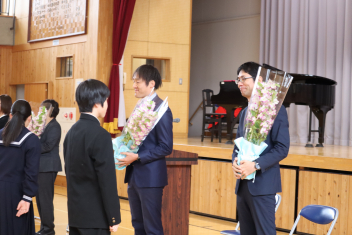 今日の離任式では、休み中にもかかわらず、多くの生徒が登校してくれました。