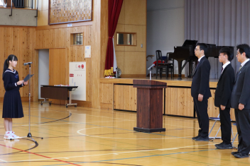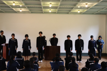 旧王子製紙製品倉庫跡、通称「赤レンガ」学級委員の任命生徒会役員の任命、委嘱がありました。