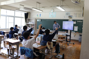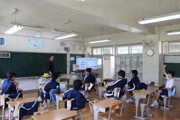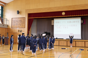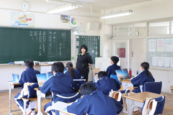 春野中学校について、1日の流れや授業、委員会、部活動などわかりやすく説明。