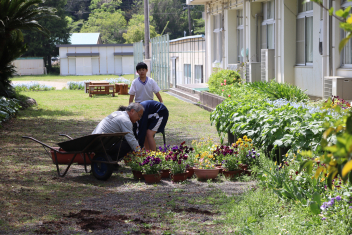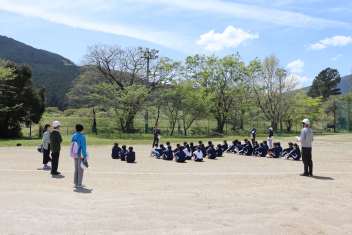 時折雨がパラつく中、学年の先生のほかにも、校長先生山下養護教諭用務員さんもお手伝いに来てくれました。wink