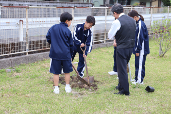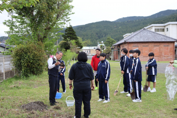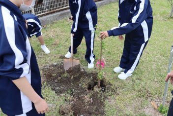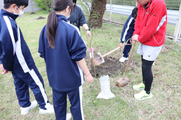 竹村教諭が植樹のレクチャーをしてくれました。wink