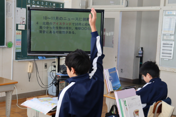 ICTを活用して、クイズに挑戦したり資料を見たり、いつも通りに楽しく、学び多き授業を展開!sad