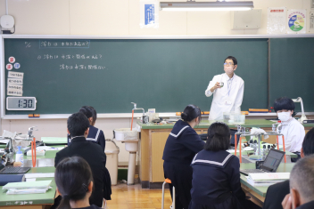 教務主任「片瀬教諭」3年生理科の授業。「浮力について」