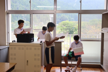 校長先生からは、「目指す生徒像」の4項目のうちの2つ目、「自他を尊重し、いじめや差別・偏見を許さない生徒」についてお話がありました。最後は、「命、健康が第一。事故やケガ、病気には十分気を付けて、2学期に、よりたくましく成長した皆さんと、再び会えることを楽しみにしています。」と締めました。