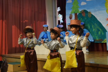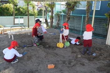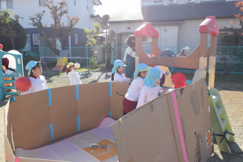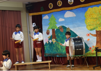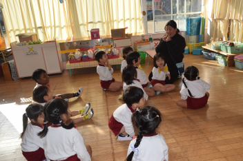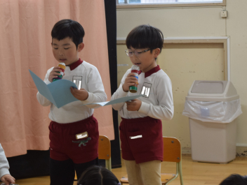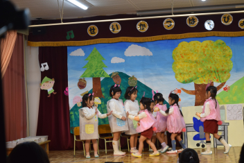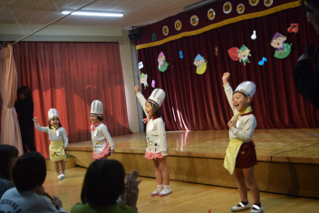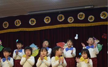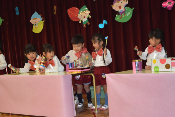 【年中】遊戯室で、歌を歌ったり楽器を鳴らしたりしているさくら組さん