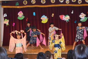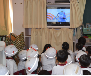 【年長】「さくらさくら」を踊った後は、タブレットを使って先生や友達と今日の振り返り