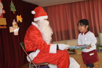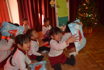 大きな袋の中身は・・もちろんプレゼントsad1人ずつ、サンタクロースさんから、手渡しでプレゼントをもらいました「メリークリスマスsadいい子にしていたねsad