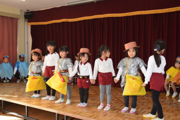 年少さんも大きな口をあけて、元気よく歌うことができるようになりましたsad初めての発表会ですが、みんなと一緒に表現遊びを楽しんでいます