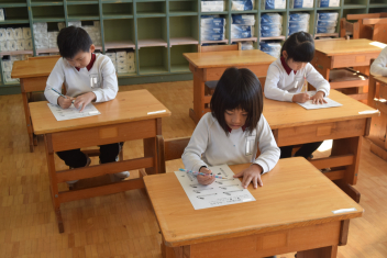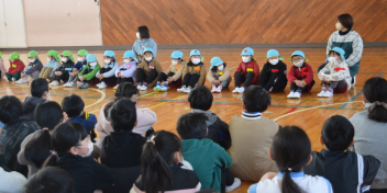 今日は万斛幼稚園さんと一緒に、中郡小学校5年生との交流に行ってきました広い廊下、階段、たくさんの部屋・・幼稚園との違いに驚いていましたsad1年生の授業の様子も参観させていただきました。