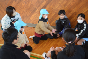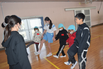 体育館では、グループに分かれて、触れ合い遊びをしました初めは緊張していた子も、ボール回し、ハンカチ落とし、ジャンケン列車、クイズなど5年生が考えてくれた楽しい遊びを通して、笑顔が増えましたsad