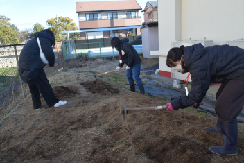 畑ボランティアのお母さんたちが、ジャガイモ畑の草取り、畝つくりのお手伝い。「子供たちのために・・」という気持ちで参加していただき、本当にありがとうございますsad