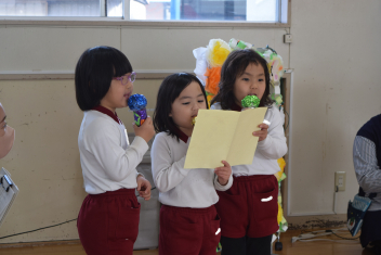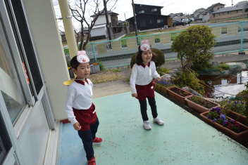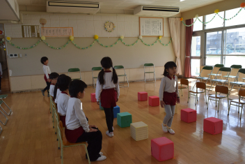 遊戯室から元気な歌声や、言葉、素敵な音楽等が聞こえますsad年長さんは、卒園式にむけての取り組みが始まりました。