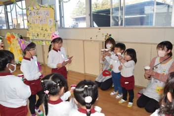 ありがとうパーティー、大成功「ゆり組さん、ありがとう」卒園まで、いっぱい遊ぼうねsad