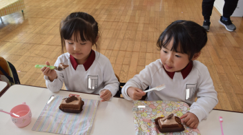 部屋に戻ってケーキでお祝いsad「おいしいね」「年長さん、喜んでくれてよかったね