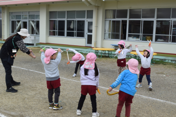 曲に合わせて、マラソンをしたり、縄跳び体操をしたり・・有玉幼稚園のお友達から「まじめ忍者」の踊りを教えてもらったり・・・sad