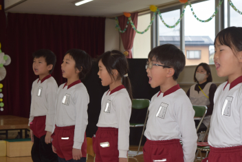 始めは歌のプレゼントですsad「さんぽ」「1年生おめでとう」の曲も「今までありがとう」という気持ちを込めてみんなで歌いましたsad