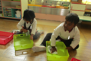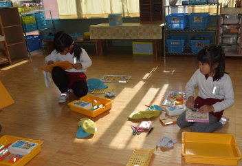 年中、年長さんは整頓することも大切です自分のお道具箱の中を、使いやすいように・・「あ、ここ、汚れてる」使ったものや場をきれいに整頓することで、物を大切にする心も育ちますsad
