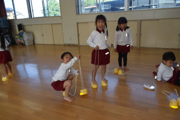 【異年齢】年長さん、年中さんは、縄跳び体操・・・縄を回したり、とんだり・・みんなで挑戦