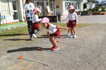 【年中】縄跳びで遊ぼう縄跳びの縄に触れる・・今日は両足ジャンプをしてみよう