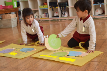 年中さんは、お家の人と一緒に遊ぶ「島鬼」はとても楽しかったようですね