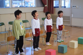 遊戯室から元気な歌声や、言葉、素敵な音楽等が聞こえますsad年長さんは、卒園式にむけての取り組みが始まりました。