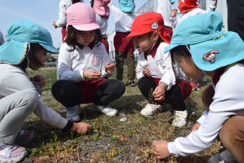 「これも春かな」「ペンペン草だよ」「お母さんと遊んだことある」いろいろな草花を発見しながら、探検は続きますsad友達や先生と一緒に楽しいひとときを過ごしましたsad