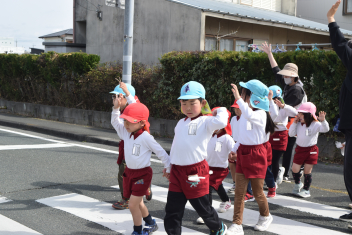 横断歩道を渡りましょうこの前、交通教室で学んだことを守って、手をあげて、「運転手さん、ありがとうございました」のあいさつも忘れずにできましたねsad今日は、みんなでたくさんの春を見つけましたね