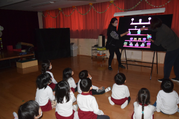 今日は「ひなまつり会」です。うれしいひなまつりの歌にあわせてブラックシアターを楽しみました三人官女や五人囃子なども覚えましたねsad