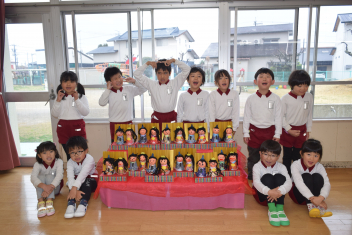 子供たちの健やかな成長と幸福を願い・・・・大切につくったおひなさまと一緒に集合写真をとりましたsad