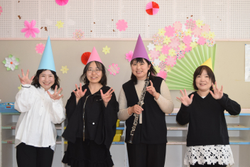 今日のお楽しみは橋爪幼稚園OBによる「親ねこ組音楽隊wink」のコンサートでしたsadにじやありがとうの花などを歌ったりカリスマックスの踊りはみんなで立ち上がって一緒に楽しく踊ったりしましたねsad