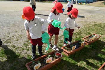 【年少】暖かくなってきたから、水かけをしようねsad「あ、芽がでてる」かわいいちゅうりっぷの芽が出ていましたsad発見したことを友達と喜んでいましたsad