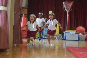 【年長】繰り返し行うことで、「競う」ことを意識し始め、チーム同士で作戦も考えるようになった年長さん。真剣に走る姿がすてきですねsad