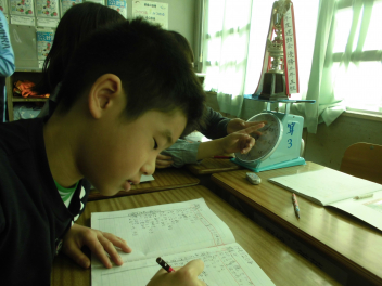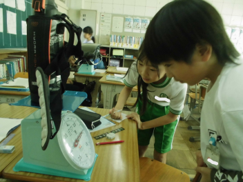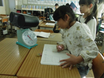 •  3年生は、算数科で「重さ」の学習に挑戦しています。