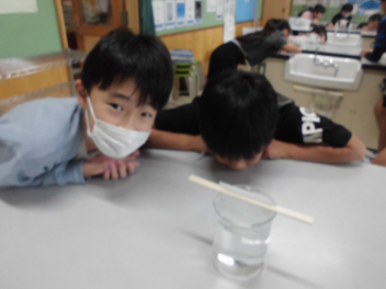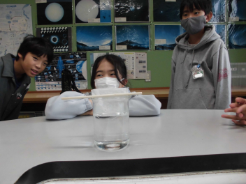 「食塩を水に溶かす前と溶かした後では、重さに変化がみられるのだろうか」について調べていました。