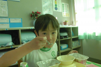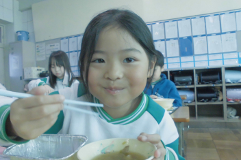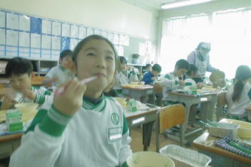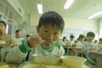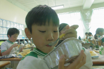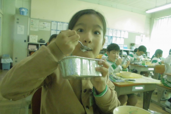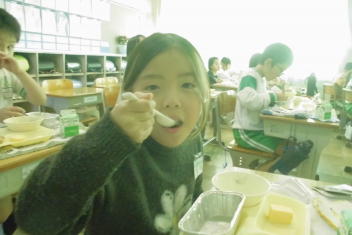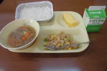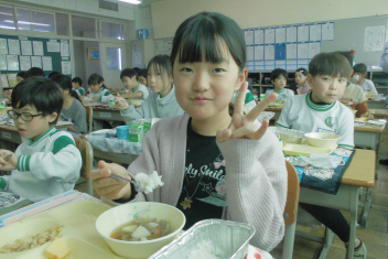 • 麦入 りごはん、牛  乳、こぎつねごはん、厚焼 き卵、のっぺい汁