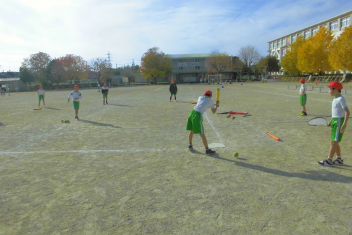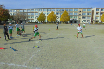 •  5年生は、体育科の学習で「ソフトボール」に挑戦しています。